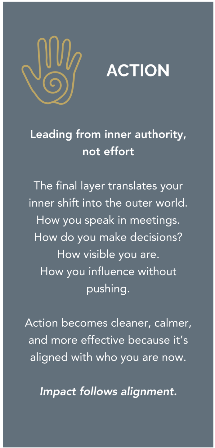 In this live group program, I guide you through five integrated layers of change that traditional leadership development simply doesn’t address because they sit beneath skills, strategies, and performance.